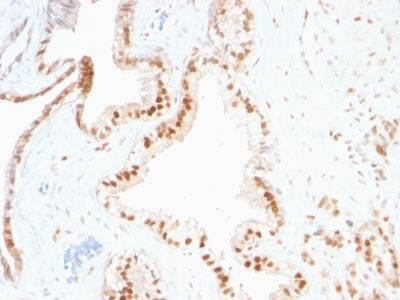 Formalin-fixed, paraffin-embedded human Prostate Carcinoma stained with p27 Monoclonal Antibody (SPM348) |