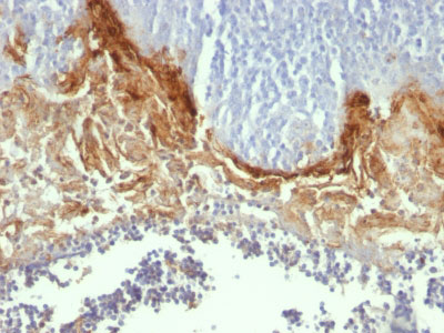 It recognizes a protein of 66kDa-170kDa, identified as involucrin. In Western blotting of cultured human keratinocytes, this MAb reacts with a 120kDa protein. It stains the involucrin in a variety of sizes: 170kDa in MCF-7 cells, a doublet of ~115kDa and 150kDa in gorilla and owl monkey, 66kDa in dog, and a doublet of 105kDa in pig. Its epitope maps between codon 421-568 of human involucrin. Involucrin is expressed in a range of stratified squamous epithelia, including the cornea, which lacks a distinct cornified layer. In normal epidermis, it is first expressed in the upper spinous layers, and in keratinocyte cultures, all cells that have left the basal layer express it. Involucrin expression is altered in pathological conditions: in psoriasis and other benign epidermal hyperplasias, involucrin expression begins closer to the basal layer than normal; expression is abnormal in squamous cell carcinomas and premalignant lesions, and is reduced in severe dysplasias of the larynx and cervix.