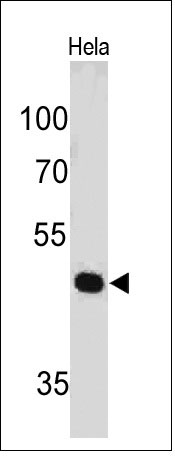 Western Blot of HeLa Cell Lysate using PAX7 Monoclonal Antibody (PAX7/497). |