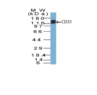 Western Blot of CD31 in THP-1 Lysate using CD31 Monoclonal Antibody (C31.7) |