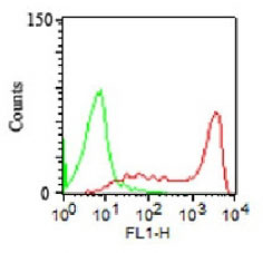 FACS Analysis human of PBMC using CD45RA Monoclonal Antibody (158-4D3) (red) and isotype control (green). |