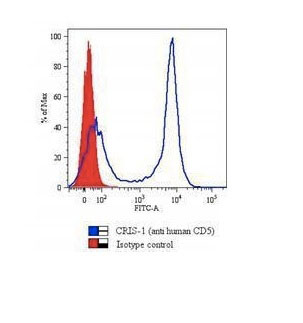 FCM staining of human PBMC's using CD5 Monoclonal Antibody (CRIS-1). |