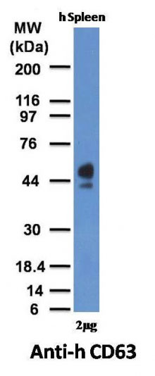 Western Blot of human spleen Lysate with CD63 Monoclonal Antibody (NKI/C3)
