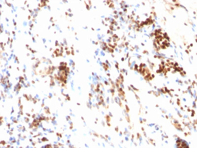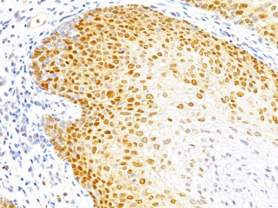 Formalin-fixed, paraffin-embedded human Cervical Cancer stained with p27 Monoclonal Antibody (DCS-72.F6)