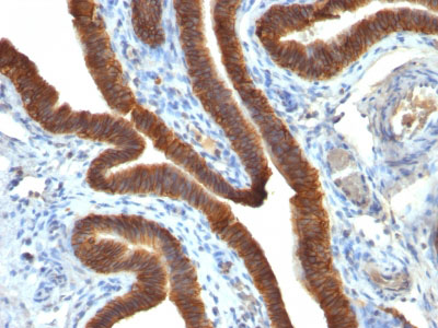 Formalin-fixed, paraffin-embedded human Ovarian Carcinoma stained with Ep-CAM Monoclonal Antibody (EGP40/837).