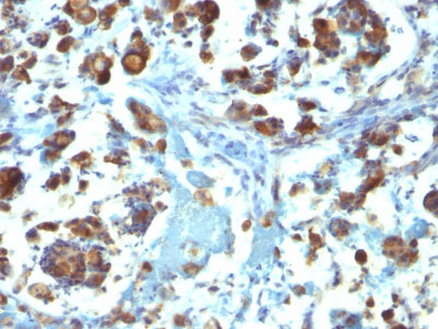 Formalin-fixed, paraffin-embedded human Gastric Carcinoma stained with MUC3 Monoclonal Antibody (M3.1).