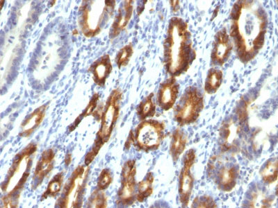 Formalin-fixed, paraffin-embedded human Gastric Carcinoma stained with MUC6 Monoclonal Antibody (MUC6/916). |