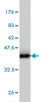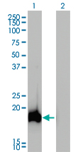 Western Blot analysis of AHNAK expression in transfected 293T cell line by AHNAK monoclonal antibody (M01), clone 3G7.Lane 1: AHNAK transfected lysate(16 KDa).Lane 2: Non-transfected lysate.