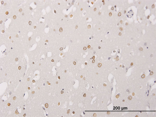 Immunoperoxidase of monoclonal antibody to ALPK3 on formalin-fixed paraffin-embedded human cerebral cortex. [antibody concentration 1 ug/ml]