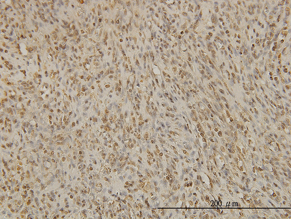 Immunoperoxidase of monoclonal antibody to BUB1B on formalin-fixed paraffin-embedded human spleen. [antibody concentration 1 ug/ml] |