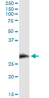 Immunoprecipitation of CD7 transfected lysate using anti-CD7 monoclonal antibody and Protein A Magnetic Bead (<a href="products_detail.asp?Catalog_id=U0007">U0007</a>), and immunoblotted with CD7 MaxPab rabbit polyclonal antibody.