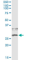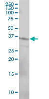 Immunoprecipitation of CD79B transfected lysate using anti-CD79B monoclonal antibody and Protein A Magnetic Bead (<a href="products_detail.asp?Catalog_id=U0007">U0007</a>), and immunoblotted with CD79B MaxPab rabbit polyclonal antibody. |