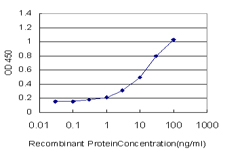 Detection limit for recombinant GST tagged EBI3 is approximately 0.3ng/ml as a capture antibody. |