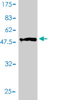 Western Blot analysis of EDN3 expression in transfected 293T cell line by EDN3 monoclonal antibody (M01), clone 2A6-2A4.Lane 1: EDN3 transfected lysate(25.5 KDa).Lane 2: Non-transfected lysate. |
