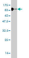 Western Blot analysis of ENG expression in transfected 293T cell line by ENG monoclonal antibody (M01), clone 4C11.Lane 1: ENG transfected lysate(70.6 KDa).Lane 2: Non-transfected lysate.