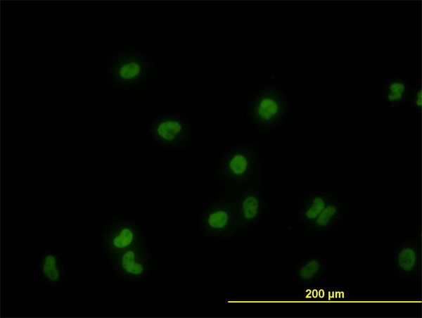 Immunofluorescence of monoclonal antibody to GATA2 on HeLa cell. [antibody concentration 10 ug/ml] |