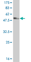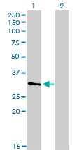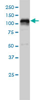 Western Blot analysis of HDAC7A expression in transfected 293T cell line by HDAC7A monoclonal antibody (M01), clone 2B11-1C1.Lane 1: HDAC7A transfected lysate(29.6 KDa).Lane 2: Non-transfected lysate. |