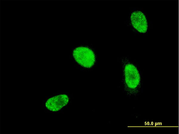 Immunofluorescence of monoclonal antibody to HOXA5 on HeLa cell . [antibody concentration 10 ug/ml]