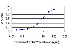 Detection limit for recombinant GST tagged IGSF8 is approximately 0.1ng/ml as a capture antibody. |