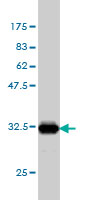 Western Blot analysis of IL27 expression in transfected 293T cell line by IL27 monoclonal antibody (M01), clone 3F12.Lane 1: IL27 transfected lysate(27.5 KDa).Lane 2: Non-transfected lysate. |