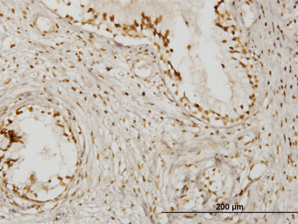 Immunoperoxidase of monoclonal antibody to KLHDC4 on formalin-fixed paraffin-embedded human prostate. [antibody concentration 1.5 ug/ml]