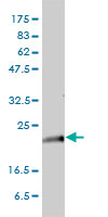 Western Blot analysis of KRAS expression in transfected 293T cell line by KRAS monoclonal antibody (M01), clone 3B10-2F2.Lane 1: KRAS transfected lysate(21 KDa).Lane 2: Non-transfected lysate. |