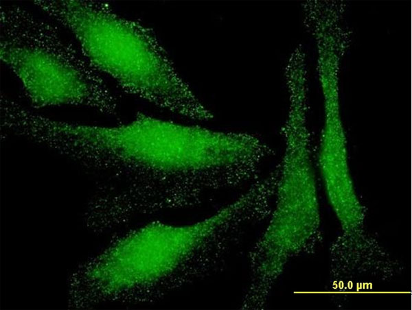 Immunofluorescence of monoclonal antibody to LMO3 on HeLa cell . [antibody concentration 10 ug/ml]