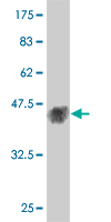 MAPK12 monoclonal antibody (M06), clone 1G3 Western Blot analysis of MAPK12 expression in K-562 ( AMM03769G )