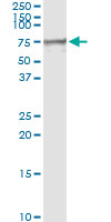 Immunoprecipitation of MSLN transfected lysate using anti-MSLN monoclonal antibody and Protein A Magnetic Bead (<a href="products_detail.asp?Catalog_id=U0007">U0007</a>), and immunoblotted with MSLN MaxPab rabbit polyclonal antibody.