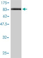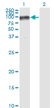Western Blot analysis of PECAM1 expression in transfected 293T cell line by PECAM1 monoclonal antibody (M01), clone 1D2-1A5.Lane 1: PECAM1 transfected lysate(82.4 KDa).Lane 2: Non-transfected lysate. |