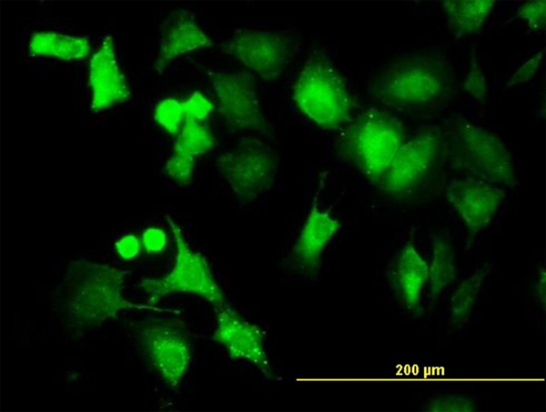 Immunofluorescence of monoclonal antibody to PPM1B on HeLa cell. [antibody concentration 10 ug/ml] |