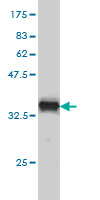 Western Blot analysis of PSMB8 expression in transfected 293T cell line by PSMB8 monoclonal antibody (M01), clone 1B3.Lane 1: PSMB8 transfected lysate(29.8 KDa).Lane 2: Non-transfected lysate.