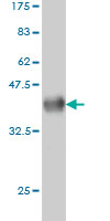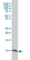 Western Blot analysis of S100A2 expression in transfected 293T cell line by S100A2 monoclonal antibody (M03), clone 3H8.Lane 1: S100A2 transfected lysate(11 KDa).Lane 2: Non-transfected lysate. |