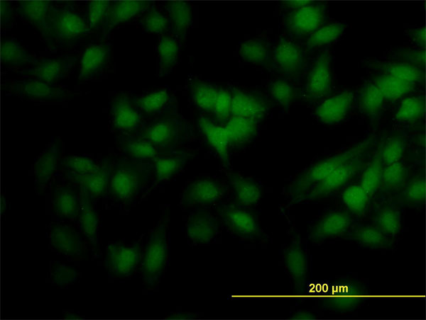 Immunofluorescence of monoclonal antibody to SCAND2 on HeLa cell. [antibody concentration 10 ug/ml] |