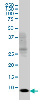 Western Blot analysis of SH2D1A expression in transfected 293T cell line by SH2D1A monoclonal antibody (M01), clone 1C9.Lane 1: SH2D1A transfected lysate(14.2 KDa).Lane 2: Non-transfected lysate. |