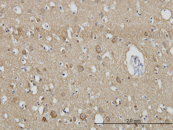 Immunoperoxidase of monoclonal antibody to SH3GL2 on formalin-fixed paraffin-embedded human cerebral cortex. [antibody concentration 3 ug/ml] |