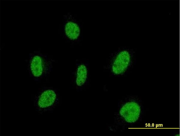 Immunofluorescence of monoclonal antibody to SIX2 on HeLa cell . [antibody concentration 10 ug/ml] |