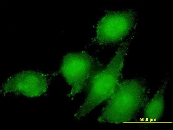Immunofluorescence of monoclonal antibody to STAMBP on HeLa cell . [antibody concentration 10 ug/ml]