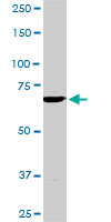 TBX3 monoclonal antibody (M02), clone 8H3. Western Blot analysis of TBX3 expression in Raw 264.7 ( AMM04173G ) |