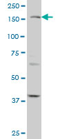 TEK monoclonal antibody (M02), clone 3F8 Western Blot analysis of TEK expression in A-431 ( AMM04185G )