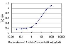 Detection limit for recombinant GST tagged TEK is approximately 0.1ng/ml as a capture antibody. |