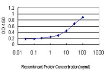 Detection limit for recombinant GST tagged TEK is approximately 0.3ng/ml as a capture antibody. |