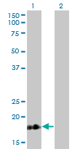 Western Blot analysis of TNNC1 expression in transfected 293T cell line by TNNC1 monoclonal antibody (M01), clone 1F8-A9.Lane 1: TNNC1 transfected lysate(18.4 KDa).Lane 2: Non-transfected lysate.