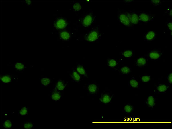 Immunofluorescence of monoclonal antibody to TOPORS on HeLa cell. [antibody concentration 10 ug/ml] |