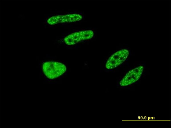 Immunofluorescence of monoclonal antibody to TRIM32 on HeLa cell . [antibody concentration 10 ug/ml] |