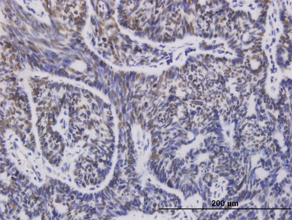Immunoperoxidase of monoclonal antibody to UBE2D1 on formalin-fixed paraffin-embedded human cervix cancer. [antibody concentration 1 ug/ml] |