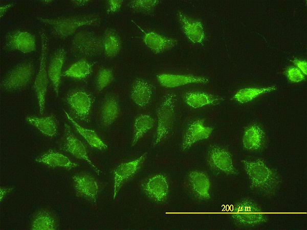 Immunofluorescence of monoclonal antibody to UBE2G1 on HeLa cell. [antibody concentration 20 ug/ml] |