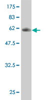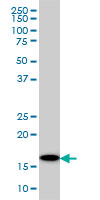 Western Blot analysis of UBE2G2 expression in transfected 293T cell line by UBE2G2 monoclonal antibody (M01), clone 5E1.Lane 1: UBE2G2 transfected lysate(15.6 KDa).Lane 2: Non-transfected lysate. |