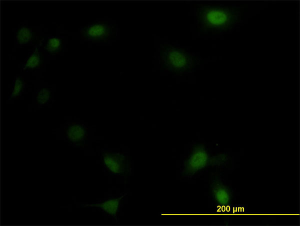 Immunofluorescence of monoclonal antibody to UBE2M on HeLa cell. [antibody concentration 10 ug/ml] |