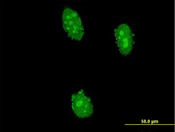 Immunofluorescence of monoclonal antibody to UHRF2 on HeLa cell . [antibody concentration 10 ug/ml] |